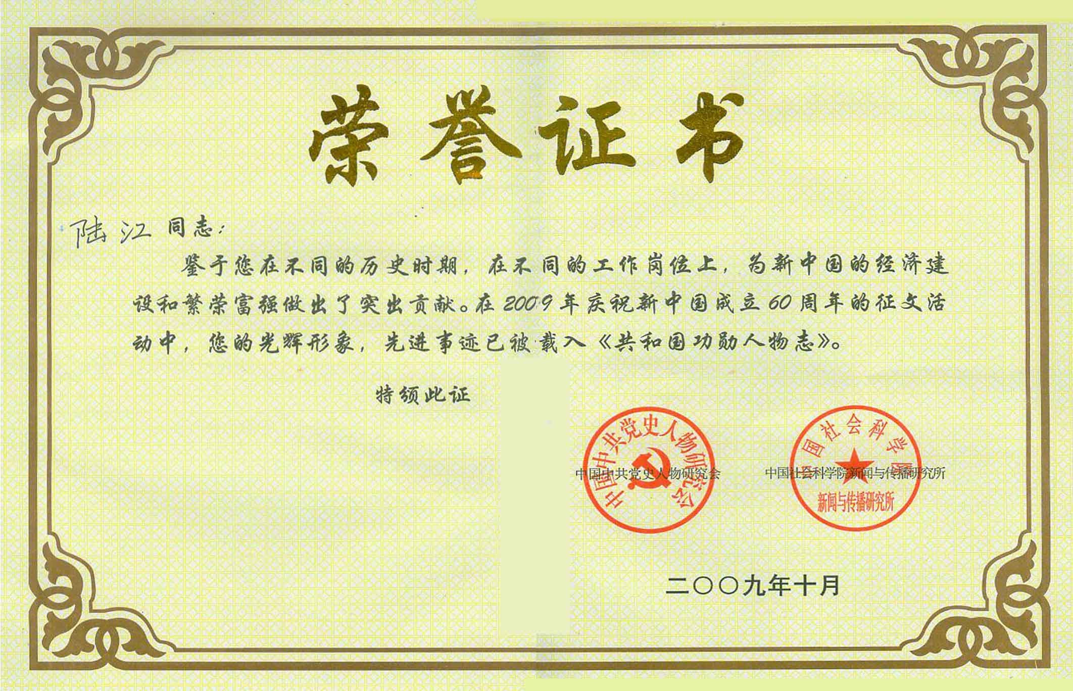 陸江的杰出貢獻(xiàn)被人民日?qǐng)?bào)社評(píng)為先進(jìn)個(gè)人