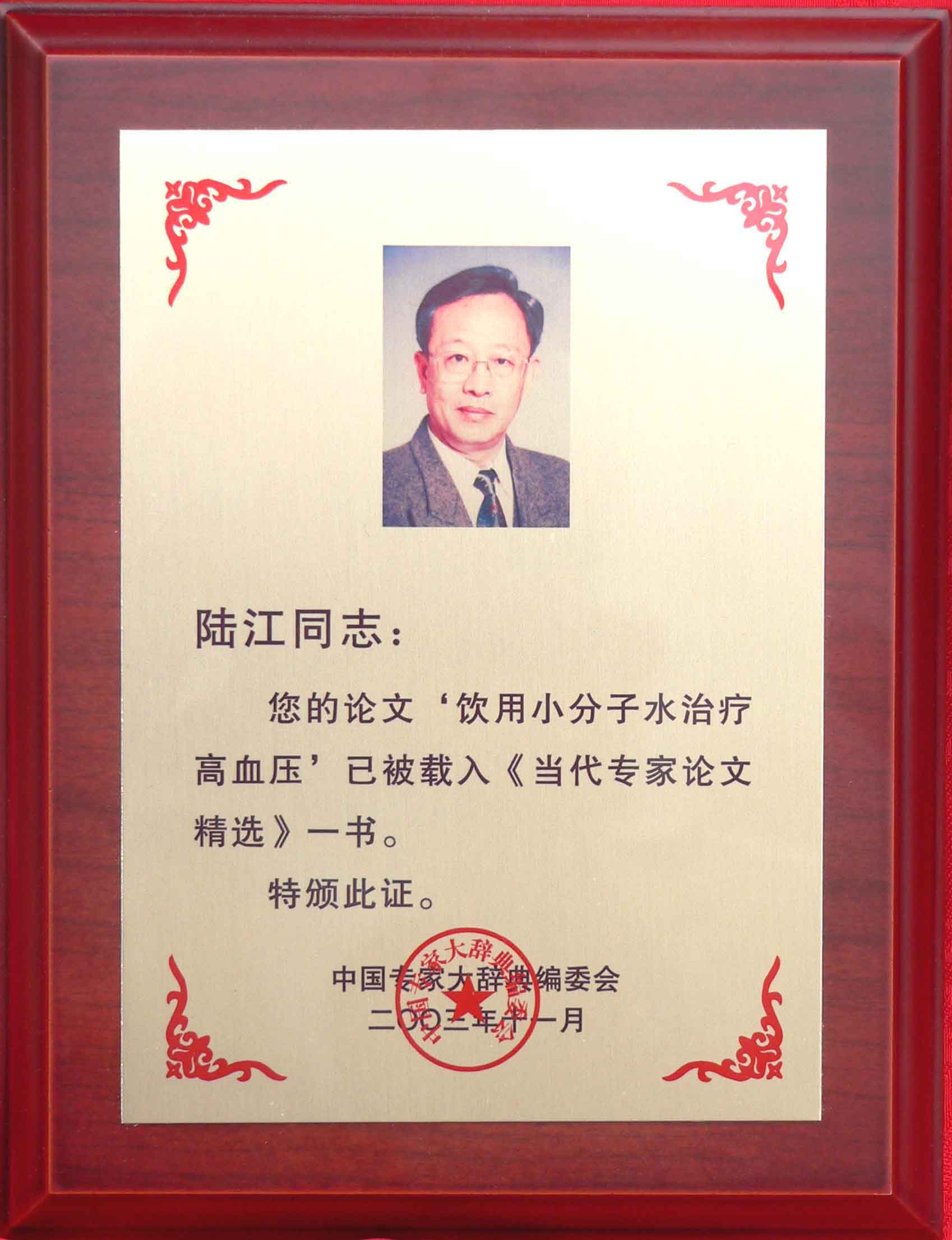 《飲用小分子水治療高血脂》獲優(yōu)秀論文獎(jiǎng)