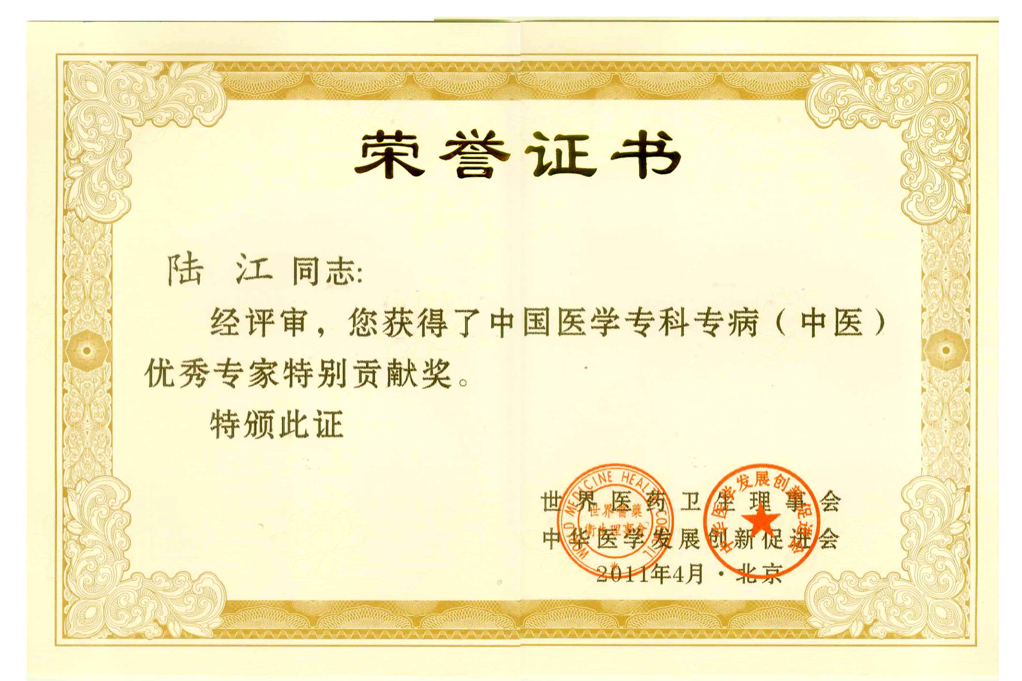 陸江獲得中國醫(yī)學(xué)專科專病優(yōu)秀專家恃別貢獻(xiàn)獎(jiǎng)